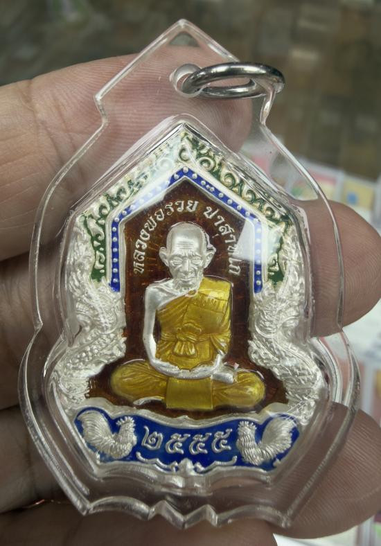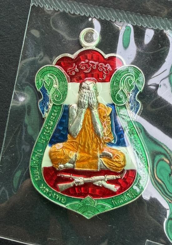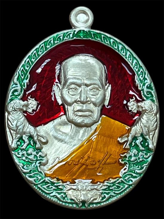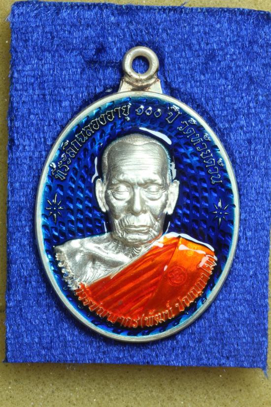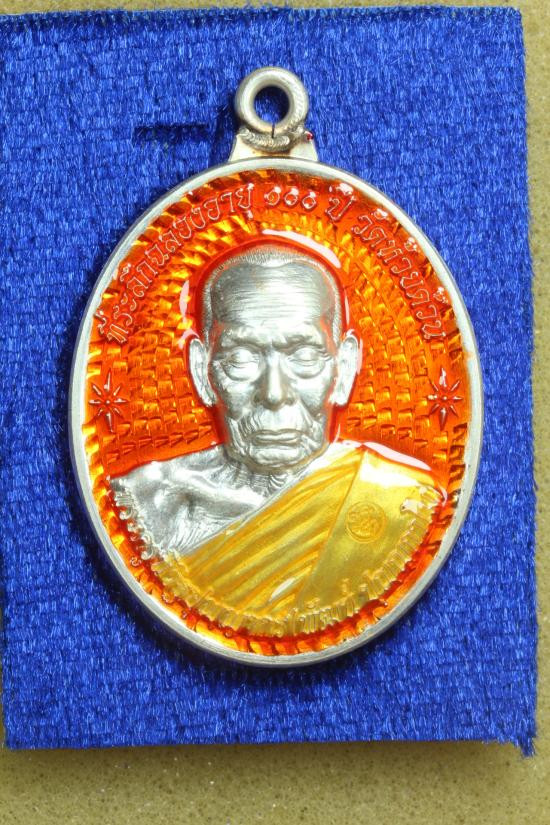 เหรียญ อายุ มั่น ขวัญยืน ปี 2555 เนื้อเงินลงยาสีแดง ตอกโค๊ดเลข 416 พร้อมกล่องเดิม |