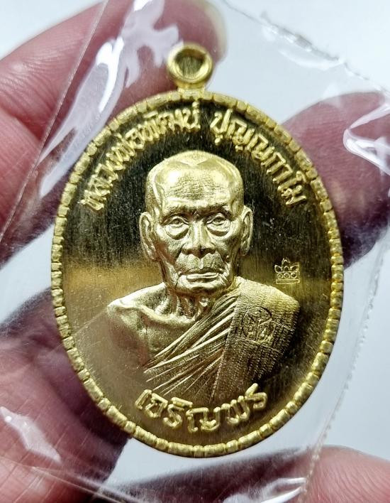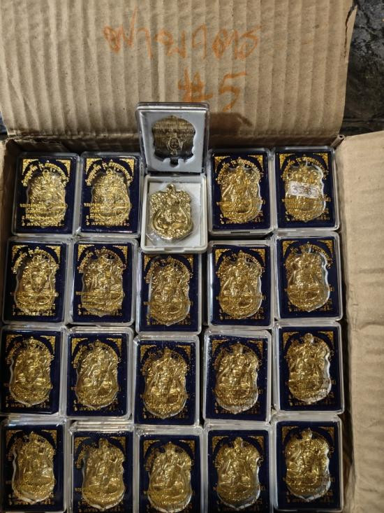 เจริญพรล่าง ลพ.พัฒน์ บล๊อกขอบขีดนิยม เนื้อทองฝาบาตร พร้อมกล่อง |