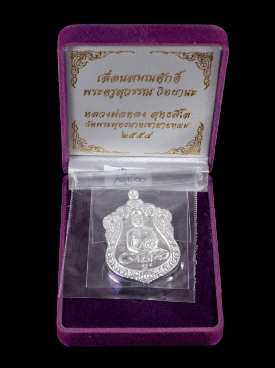 เหรียญหลวงพ่อรวย วัดตะโก รุ่นศรฤทธิ์ เนื่อเงิน หมายเลข 383 พร้อมกล่อง |