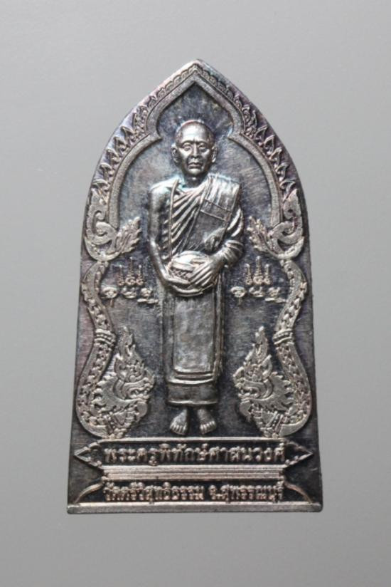 พระอาจารย์เจา วัดหนองราชวัตร จ.สุพรรณบุรี ที่รฤกฉลองอุโบสถ เนื้ออัลปาก้า หลังยันต์ ไม่แกะซีลลุ้นเลขสวย ปี2568 |