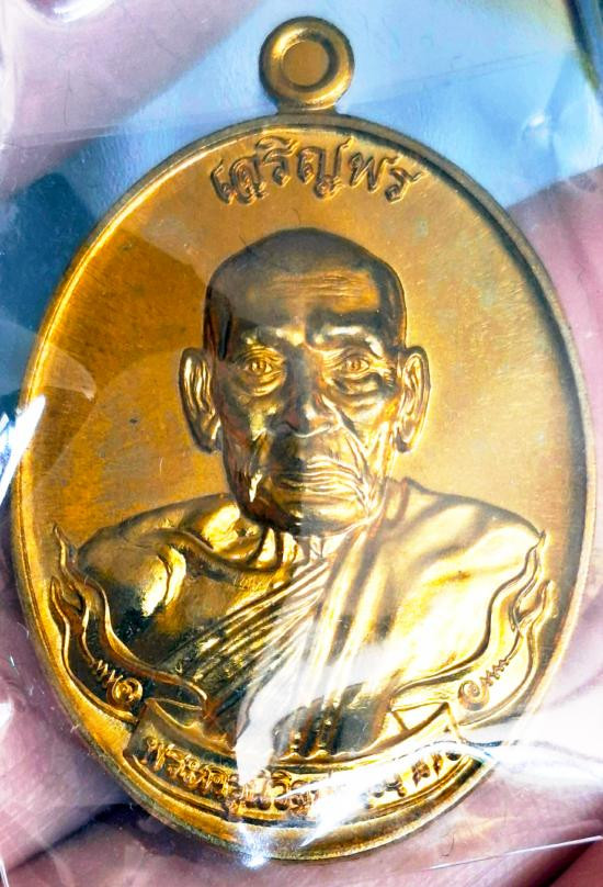 เหรียญกลมหลวงพ่อวัดบ้านแหลม ปี2538 ลาภ ผล พูน ทวี เนื้อทองแดงนอกขัดเงา |