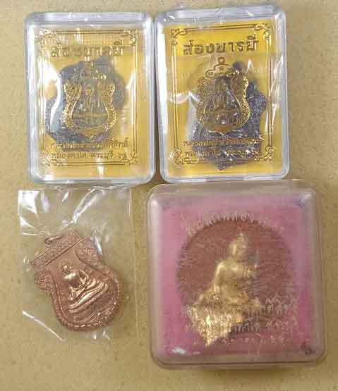 หลวงพ่อเงิน วัดบางคลาน รุ่นสิริโลกนาถ พระผงพิมพ์เจ้าสัว+เหรียญขวัญถุงเนื้อระฆังเก่า |