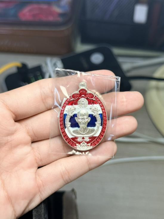เคาะเดียวแดง เหรียญหลวงพ่อพัฒน์ รุ่นไตรมาส 63 พิมพ์นั่งพาน เนื้อชุบเงินโบราณ |