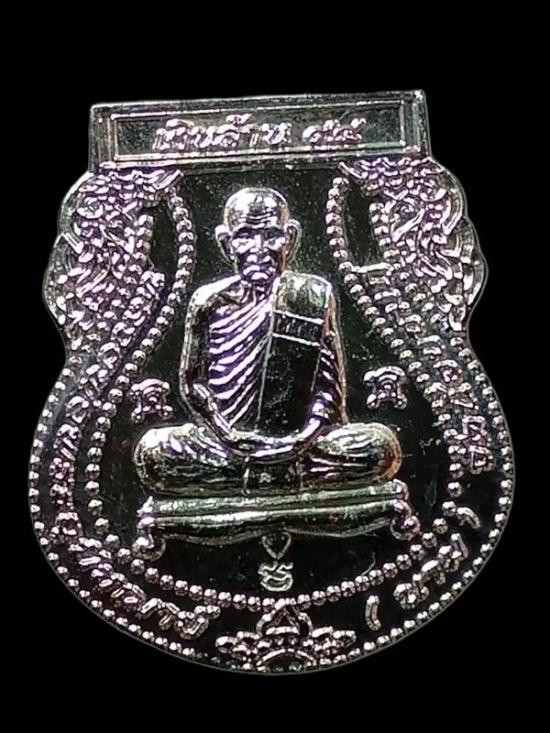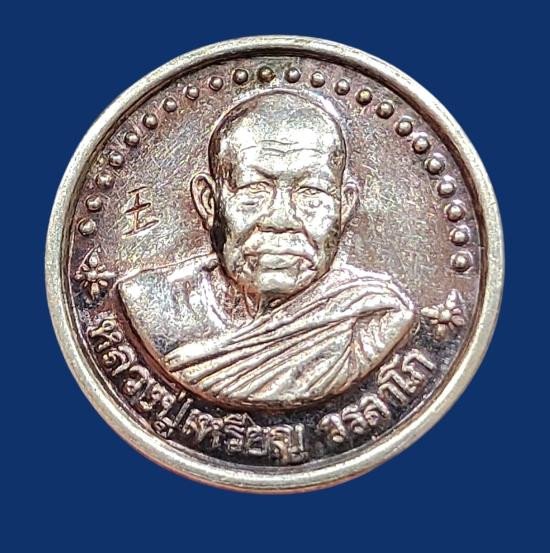 เหรียญอายุยืน หลวงปู่เพ็ง วัดโพธิ์ศรีละทาย เนื้อเงินลงยา เลข 166 เคาะเดียว |