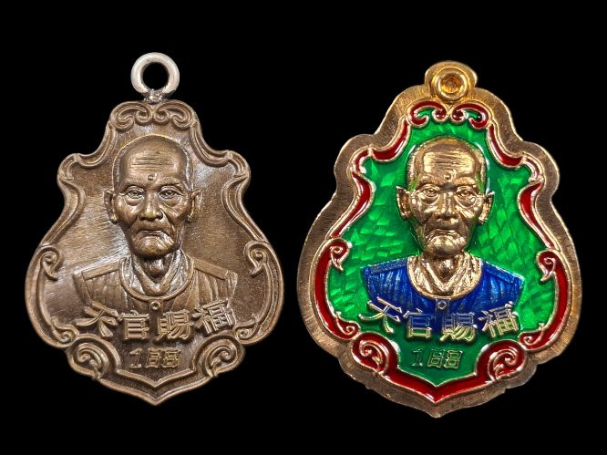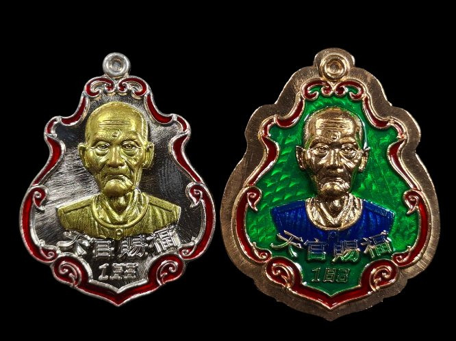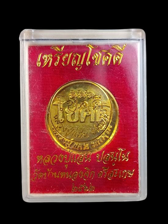 วัดใจ 200 เหรียญหลวงพ่อรวย รุ่นไตรมาส 59 เนื้อเงินลงยาเขียว วัดตะโก กล่องเดิมจากวัด เลี่ยมกันน้ำ |