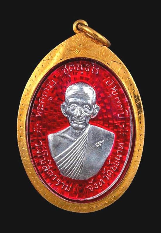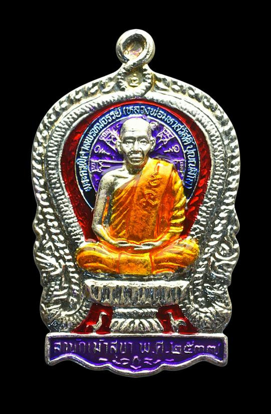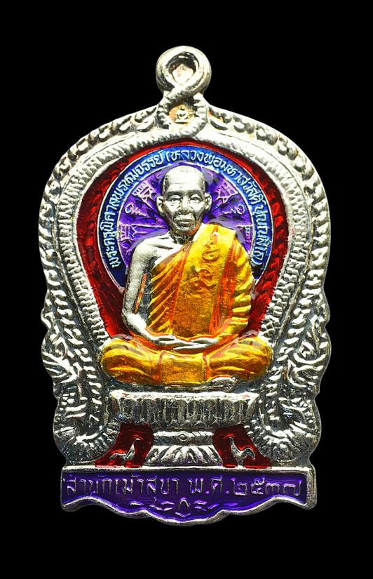 เหรียญนั่งพานเนื้อเงินลงยา หลวงพ่อเปลี้ย วัดชอนสารเดช ตำนานปืนแตก |