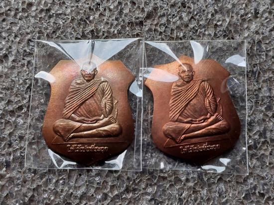 เหรียญโล่ หลวงพ่อชำนาญ วัดบางกุฎีทอง หลังยันต์ทองแดง ตอกโค๊ต ป.ท. 2 เหรียญ |