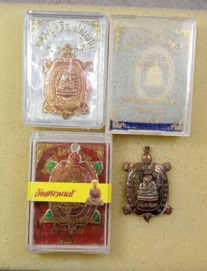 เหรียญพญาเต่าเรือน รุ่นอุดมทรัพย์หลวงปู่หลิว ปี 60 + เหรียญพญาเต่าเรือน หลวงปู่ต๋อย วัดสนามแย้ กาญจนบุรี 2 เหรียญ + เหรียญพญาเต่าเรือน ไม่ทราบที่ |