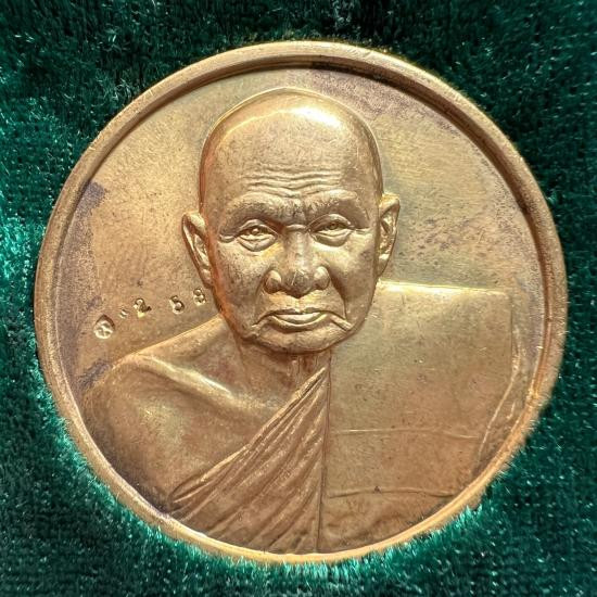 เหรียญบาตรน้ำมนต์ หลวงปู่ทิม วัดพระขาว รุ่นแรก ปี พ.ศ. 2538 เนื้อทองฝาบาตร เลข 258 กล่องเดิม |