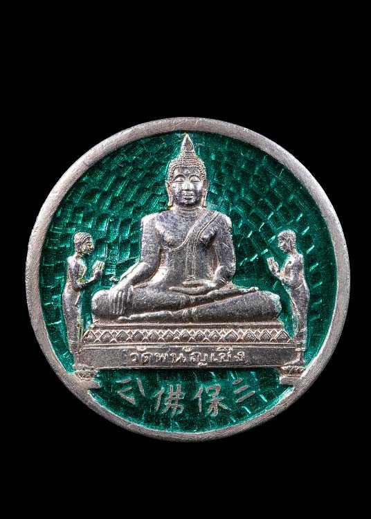 **หมายเลข 444 วัดใจ เหรียญเพชรเศรษฐี หลวงพ่อแถม วัดช้างแทงกระจาด เพชรบุรี เนื้ออาบเงินลงยา เคาะเดียวแดง** |