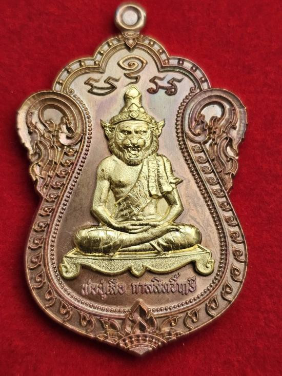 เหรียญพิมพ์เสมา พ่อปู่เสือ กาลสิทธิ์ รุ่นแรกท่าสมอ หลวงพ่อเกาะ อาภากโร วัดท่าสมอ จ.ชัยนาท(ศิษย์สายตรงหลวงพ่อกวย วัดโฆษิตาราม) เนื้อทองแดงผิวรุ้งหน้ากากทองระฆัง หมายเลข๕๔ ผลรวมได้๙ พร้อมกล่อง |