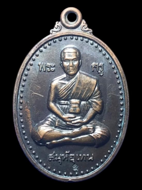 **100 ส่งด่วน*เหรียญไหว้ครู ปี2554 (ด้านหน้าบรมครูใหญ่ ด้านหลังยันต์มหามงคลพุทธคุณ) - หลวงพี่เลี้ยง วัดจอมเกษ จ.อยุธยา ตอกโค๊ต |