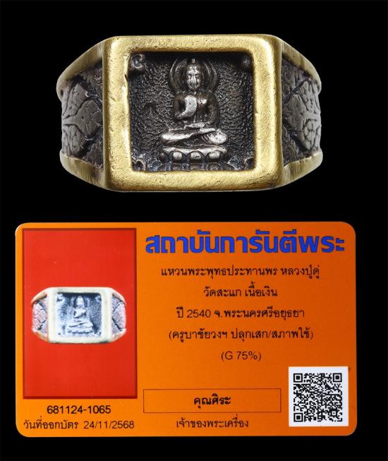 5,000บาท !ทองคำแท้ 75%! (จับขอบทองเก่าๆ) "หลวงปู่ดู่ วัดสะแก แหวนเนื้อเงิน ปี40" !ทองคำหนา แต่มีใช้มา ตามรูป ตามบัตร! "ขายวัดใจไปทุกรายการ แดงที่200-" |