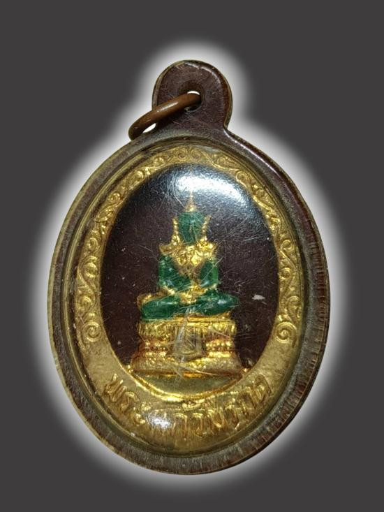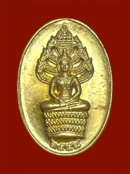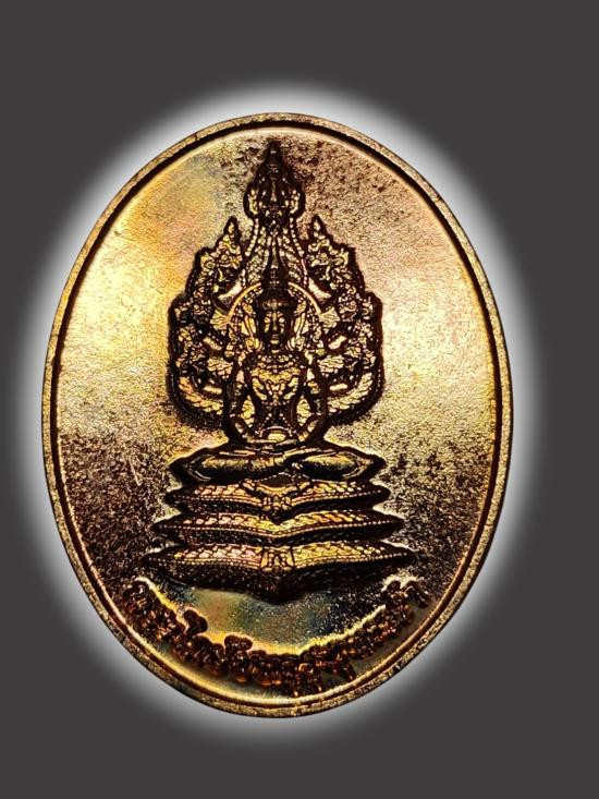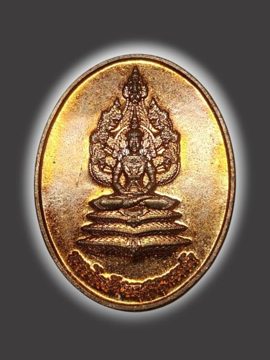 เหรียญ พระพรหม ประทานพร วัดพระยาสุเรนทร์ จ.กรุงเทพ (เนื้อทองทิพย์ผิวรุ้ง ฝังพลอยมรกตเครื่องทรง 1 เม็ด เลข 16) **สร้าง 26 เหรียญ** พร้อมกล่องเดิม |
