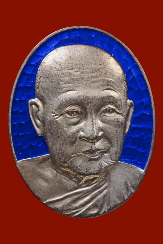 เหรียญหลวงพ่อจาด วัดบางกระเบา หลังปิดตา จ.เจริญลาภ ปี๔๐ (ย้อนยุครุ่นแรก) เนื้อเงินลงยา หน้ากากทองคำ |
