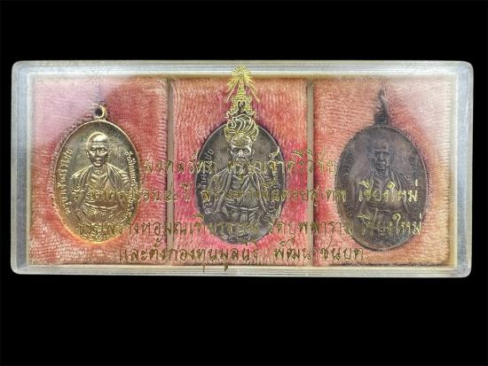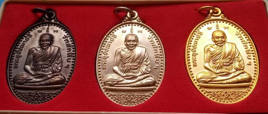(เคาะเดียวแดง)เหรียญหลวงปู่อี๋ วัดสัตหีบ ปี57 (พิมพ์ใหญ่) ครบ 3 เนื้อนอนกล่อง |