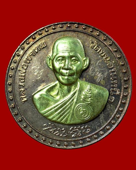 *วัดใจ* เหรียญหลวงพ่อทองสุข ออกวัดมฤคทายวัน เนื้อกะไหล่ทองหลังพอกครั่ง จ.เพชรบุรี |