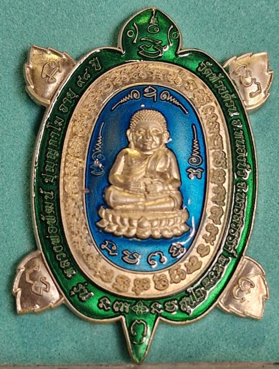 HOT!!! เหรียญรวยพันล้าน ชาตกาล 100 ปี เนื้อเงินลงยาฟ้าหน้าทองคำ จมูกสวย เลขโค๊ด 1162 หลวงพ่อรวย วัดตะโก |