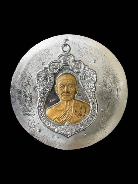 เหรียญปลดหนี้ หลวงปู่แผ้ว ปวโร หน้าหลวงปู่ทวด หลังหลวงปู่แผ้ว วัดรางหมัน ปี 2550 ผิวสวยๆ รุ้งๆ |