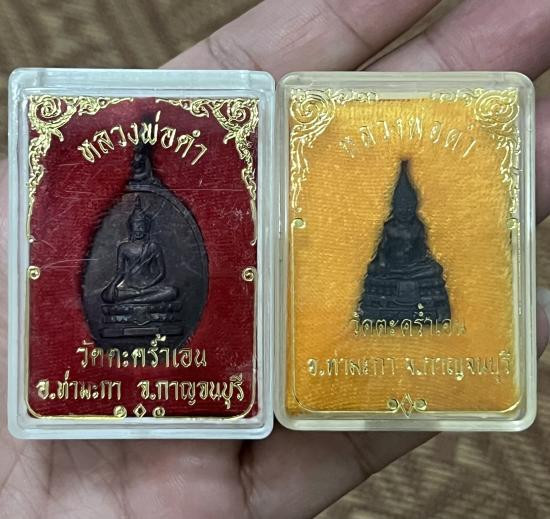 เหรียญและรูปหล่อหลวงพ่อดำ วัดตะคร้าเอน ท่ามะกา กาญจนบุรี สวยเดิมนินกล่อง |