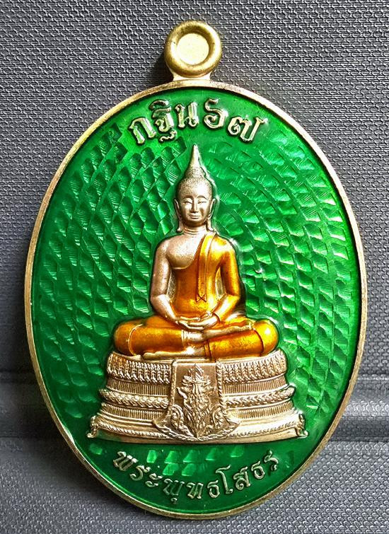 เหรียญหลวงพ่อโสธร หลังนาคเกี้ยว รุ่น"กฐิน๖๗" ออกวัดโพธิ์ศรีสะอาด กาฬสินธุ์ (รุ่นนี้ปลุกเสก 3 วาระ วาระแรก..หลวงปู่มหาศิลาเสกให้เมื่อ ตุลาคม ๒๕๖๗) เนื้อทองฝาบาตรโบราณผิวรุ้ง คุ้ยพื้น ลงยาเขียว ลงยาจี |