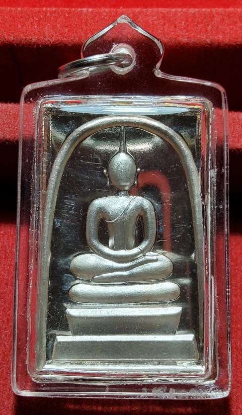 เหรียญนั่งพาน เนื้อนวะหน้ากากเงิน ด้านหลังเป็นยันต์ จารมือ พระครูปลัดวิชัย วัดสันติวิหาร สระบุรี เลข 1251 แดงเคาะแรก |