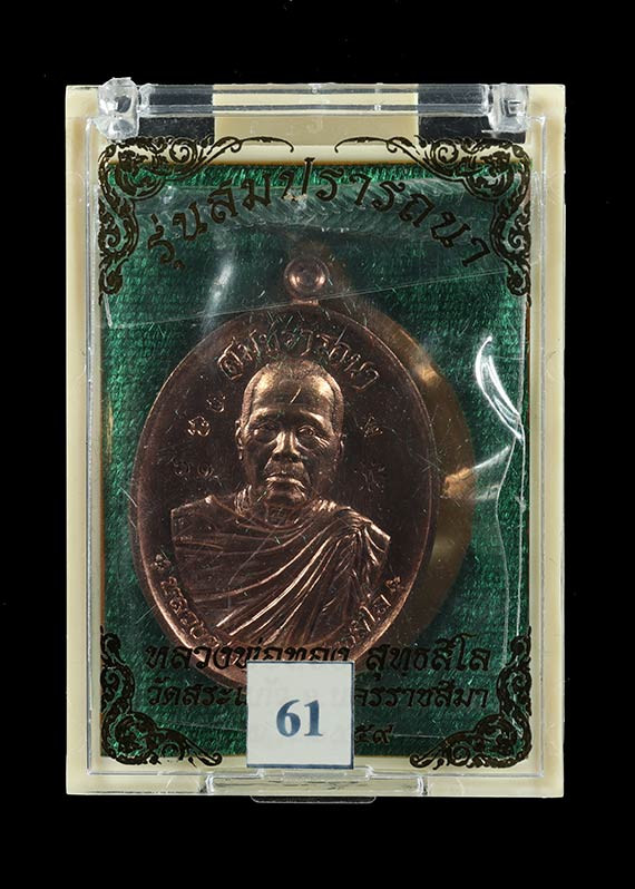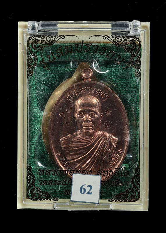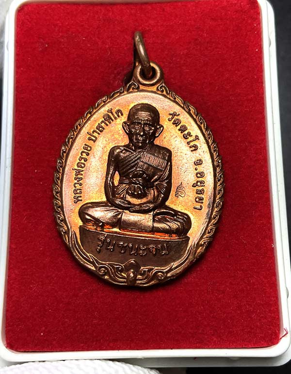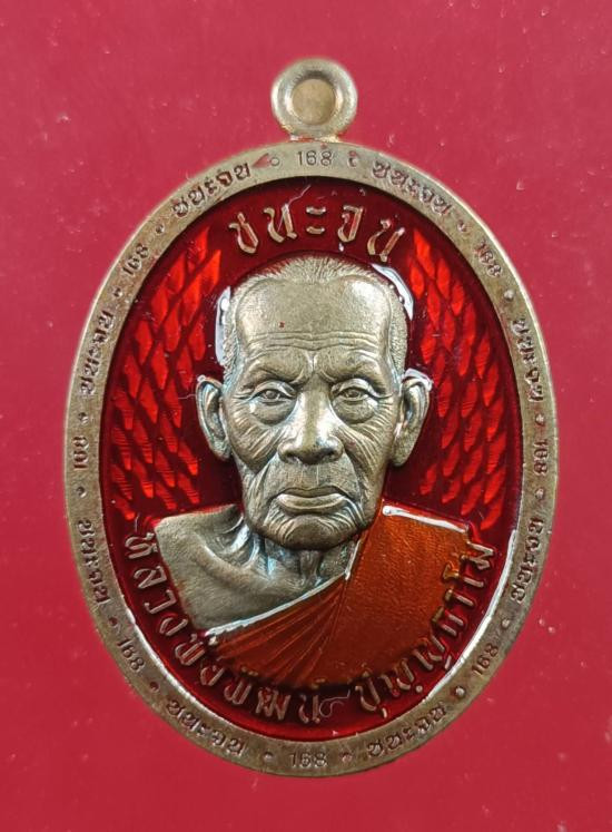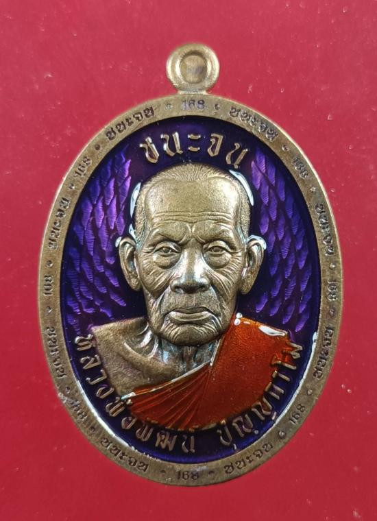 119........วัดใจ เหรียญ เจ้าสัว หลวงพ่อพัฒน์ จัดสร้างโดย บอยท่าพระจันทร์ ปี 2565 เนื้อทองแดงโบราณลงยาขอบ หลังหน้ากากชนวน สวยเดิมกล่องเดิม |