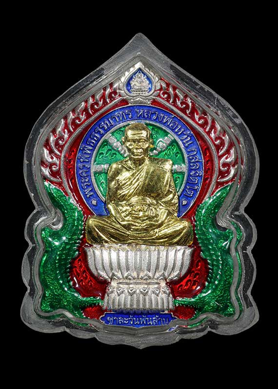 หลวงพ่อพัฒน์ วัดห้วยด้วย เหรียญนารายณ์แปลงรูป เนื้อชนวน องค์เงินลงยาจีวร ปี2563 เลข27 ไม่มีกล่อง |