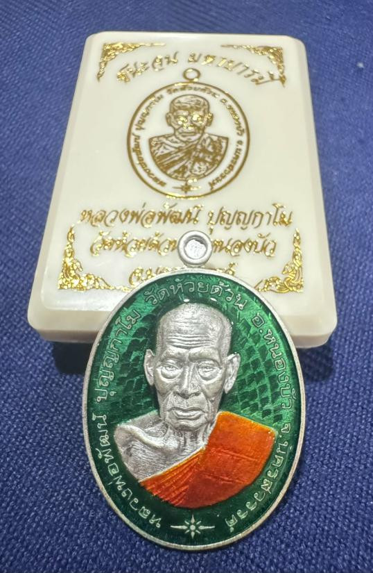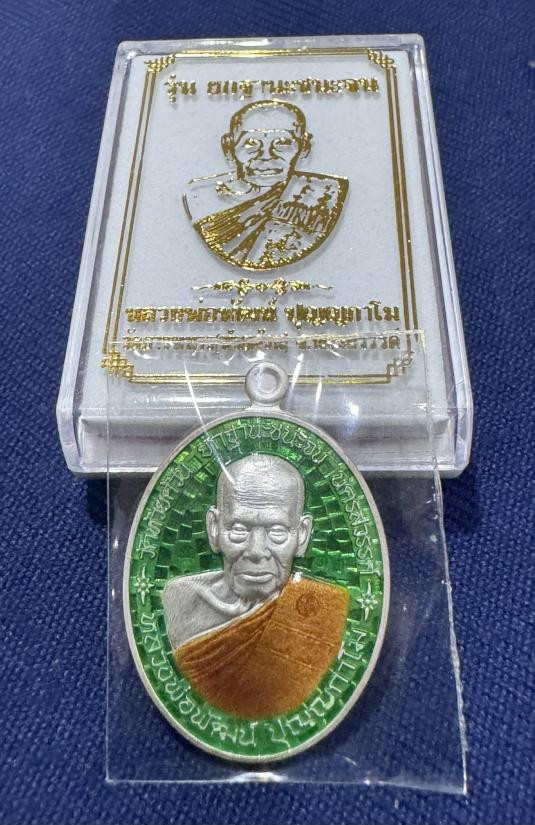 เหรียญเจริญพรล่าง๙๙ หลวงพ่อพัฒน์ วัดห้วยด้วน เนื้อเงินลงยา |
