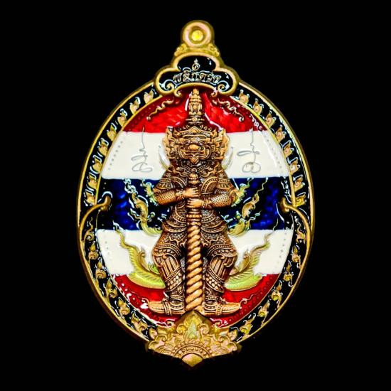 เหรียญท้าวเวสสุวรรณ รุ่น เหนือดวง พลิกดวง พระอาจารย์โชติ วัดพุทไธศวรรย์ จ.อยุธยา เนื้อชนวนรุ้ง หน้ากากทองแดงซาตินลงยาธงชาติ |