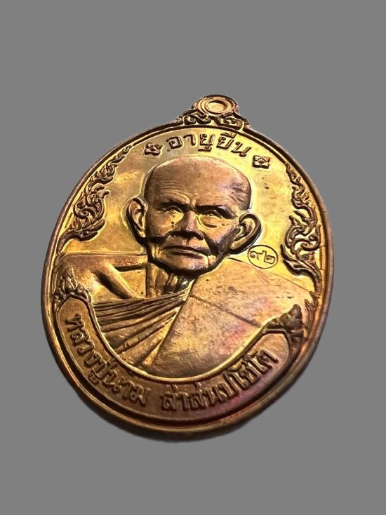 เหรียญหลวงปู่จื่อ วัดป่าพุทธรักษา (น้ำตกสายรุ้ง) ในอุปถัมถ์ วัดเขาตะเงาะอุดมพร ที่ระลึกสร้างฝาย รุ่นแรก จ.ชัยภูมิ ตอกโค๊ต อ ตอกหมายเลข 12 งยาสีม่วง |