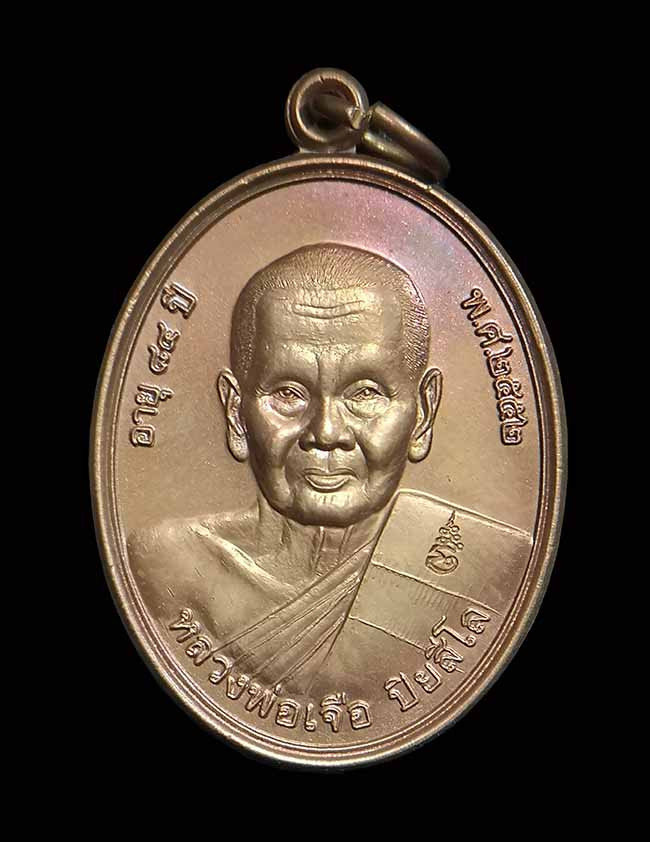 เหรียญแซยิด ๘๔ ปี เนื้อทองแดง หลวงปู่เจือ วัดกลางบางแก้ว นครปฐม ปี ๕๒ |