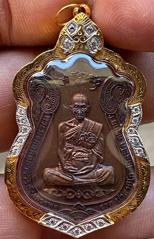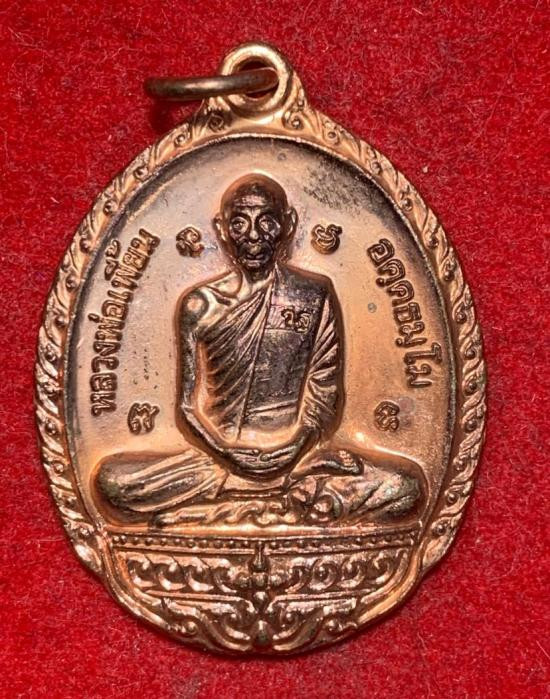 เหรียญโล่ห์ หลวงพ่อตาบ วัดมะขามเรียง รุ่นสร้างเจดีย์ ตอกโค๊ต เนื้อทองแดงผิวไฟ ปี32 |