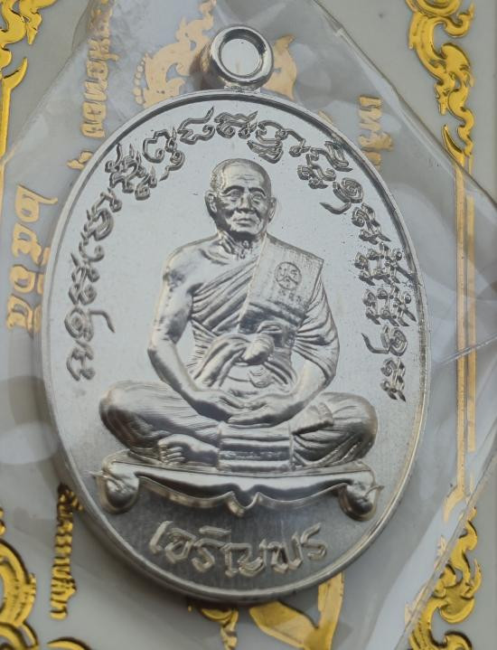 วัดใจ เนื้อเงินหน้ากากทองคำ อยู่ในรายการลุ้นโชค เหรียญปาฏิหารย์2 หลวงพ่อทอง วัดบ้านไร่( ลูกศิษย์หลวงพ่อคูณ) หลังกึ่งเรียบ เลข 5 (ถ่ายผ่านซีลเลยดูเหมือนเหรียญงอ) |