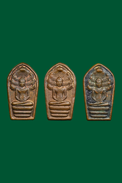 ปรกใบมะขาม รุ่นแรก หลวงปู่นนท์ วัดเหนือวน ราชบุรี 3องค์ |