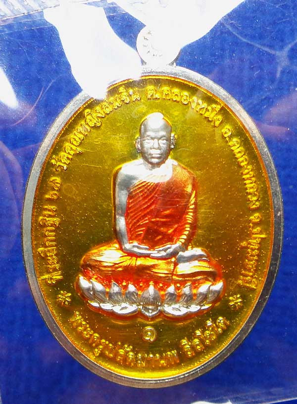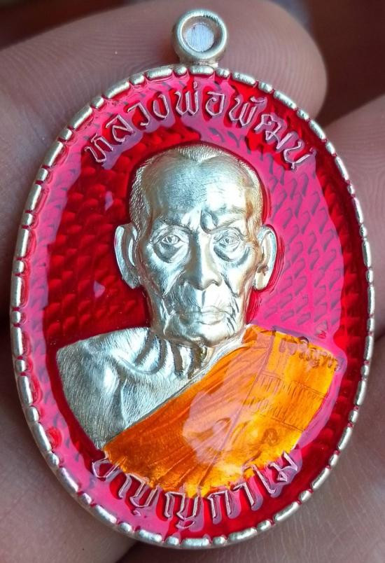 เหรียญรูปไข่ "เนื้อเงินลงยาสีแดง" ล.พ.จรัญ วัดอัมพวัน สิงห์บุรี ด้านหลังลงยาสีน้ำเงิน |