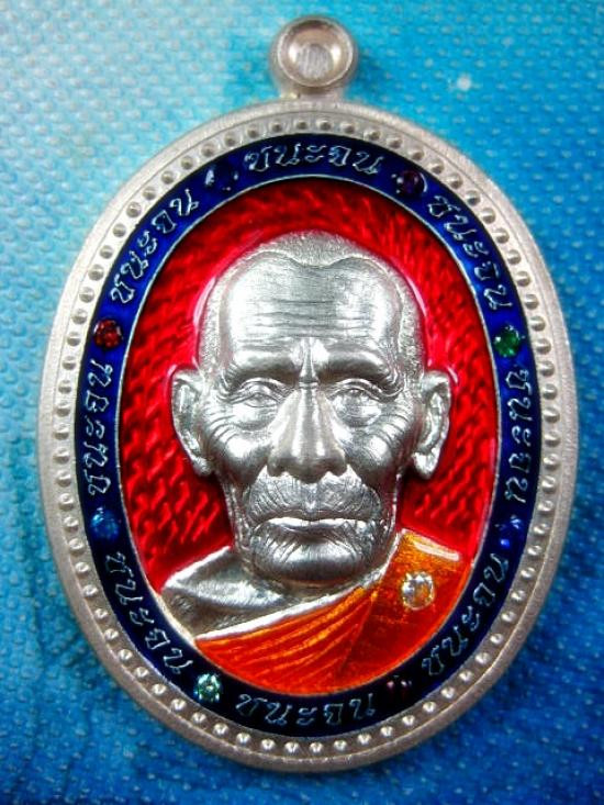 เหรียญหลังโต๊ะหมู่ "เนื้อเงินลงยา" ล.พ.จรัญ วัดอัมพวัน สิงห์บุรี หมายเลข#๙๓ |