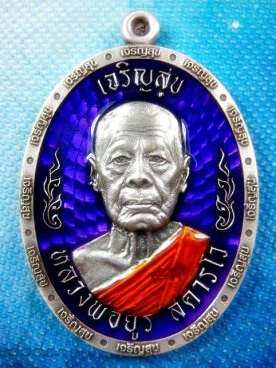 ## เนื้อเงิน ## เหรียญเจริญสุข เนื้อเงินซาติน ลงยาสีม่วง หลวงพ่อยูร สคารโว วัดพนมเศษเหนือ ผู้ศรัทธาขนานาม เทพเจ้าแห่งเขาพนมเศษ จ.นครสวรรค์ (---ฺB42---) |
