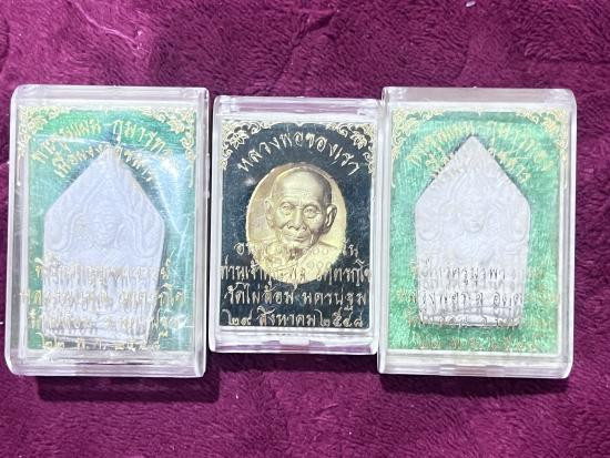 1)เหรียญหลวงพ่อพูล วัดไผ่ล้อม อนุสรณ์ 100 วัน ปี 2548 2)พระขุนแผนกุมารทอง เนื้อผงงาคชสาร พิธีไหว้ครูบูรพาจารย์ หลวงพ่อพูล วัดไผ่ล้อม จ.นครปฐม ปี 2548 (2 กล่อง) |