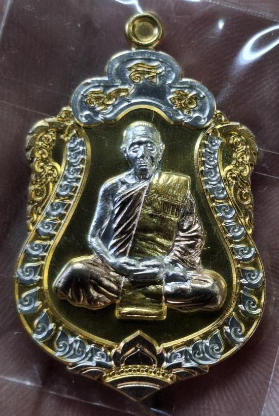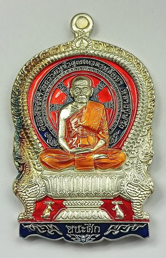 เหรียญหลวงพ่อสำเร็จศัดิ์สิทธิ์ สมเด็จธงชัย รวยพันล้าน จ.สระบุรี เนื้อเงินลงยาสีส้ม ปี 2564 ตอกโค๊ต ง.ล.ย. ตอกโค๊ต ช้าง ตอกหมายเลข 483 |