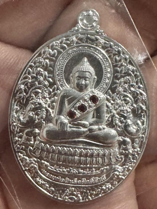 เหรียญหลวงพ่อสำเร็จศัดิ์สิทธิ์ สมเด็จธงชัย รวยพันล้าน จ.สระบุรี เนื้อเงินลงยา ปี 2564 ตอกโค๊ต ง.ล.ย. ตอกโค๊ต ช้าง ตอกหมายเลข 421 |