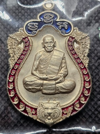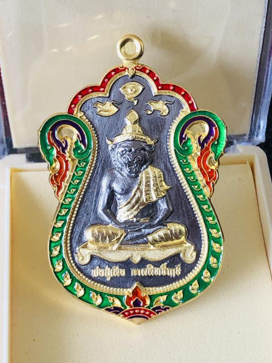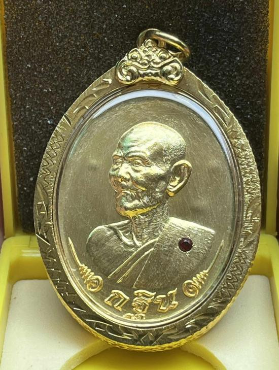 เหรียญเจริญพรรษา8รอบ หลวงปู่ชื่น วัดญาณแสน ปี45 เนื้อเงินลงยาหน้ากากทอง พร้อมกล่อง |