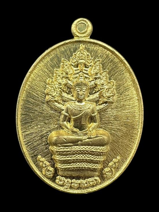 เหรียญพระพุทธ พ่อ-แม่ เนื้อทองแดงกะไหล่ทอง หลวงพ่อยิด วัดหนองจอก สร้างปี 2534 |