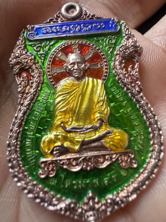 HOT!!! เหรียญไตรมาส 93 เนื้อเงินลงยาสีเขียว ปี 2557 เลข 599 หลวงพ่อรวย วัดตะโก พร้อมกล่องเดิม |