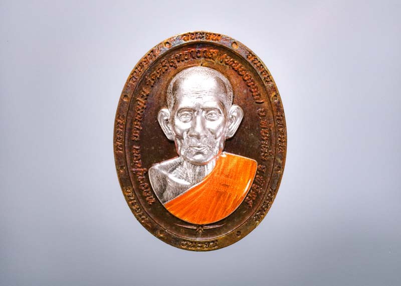 หลวงพ่อพัฒน์ วัดห้วยด้วน เศรษฐีทวีทรัพย์ 100 ล้าน เลข 799 เนื้อทองฝาบาทรลงยาม่วง พร้อมดล่องเดิม |
