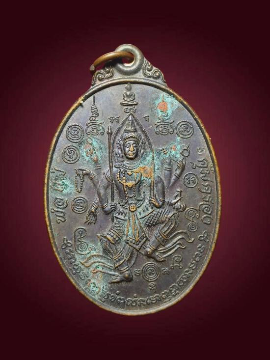 เหรียญพระนารายณ์สิบกร พระอาจารย์ติ๋ว วัดมณีชลขันธ์ เนื้อทองแดง |