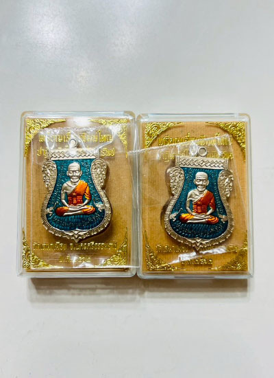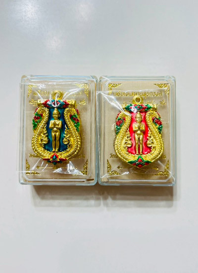 พระขุนแผน เนื้อเงินลงยาเขียว จีวรเหลือง วัดยานนาวา มาพร้อมกล่องเดิมๆ |
