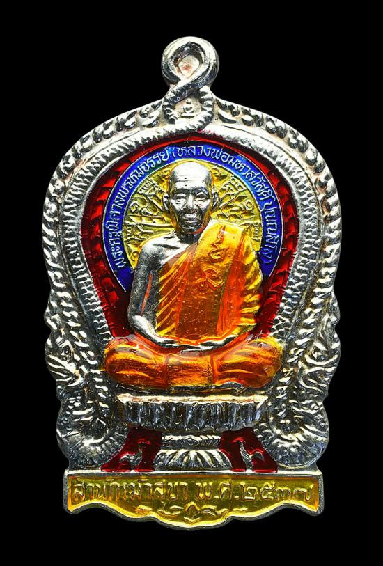 เหรียญอายุยืน หลวงพ่อหวล วัดพุทไธศวรรย์ จ.พระนครศรีอยุธยา 7 รอบ เนื้อเงินลงยา สภาพสวยเดิมพร้อมกล่องเดิม หมายเลข 71 |