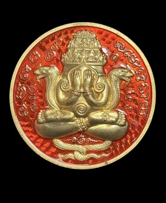 เหรียญปิดตาพังพระกาฬ 9รอบ 9พิธี 108ปี ท่านขุนพันธ์ฯ เนื้อกะไหล่ทองลงยาแดง ตอก2โค๊ด |
