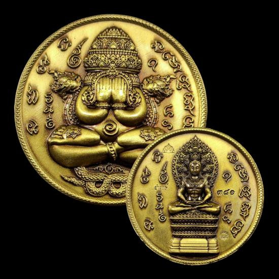 วัดใจ เหรียญพระปิดตาพังพะกาฬ วัดพระมหาธาตุฯ รุ่นลูกพ่อต้องรวย เนื้ออัลปาก้าหน้าทองเหลือง ปี2566 จ.นครศรีธรรมราช พร้อมตลับชุบทอง |